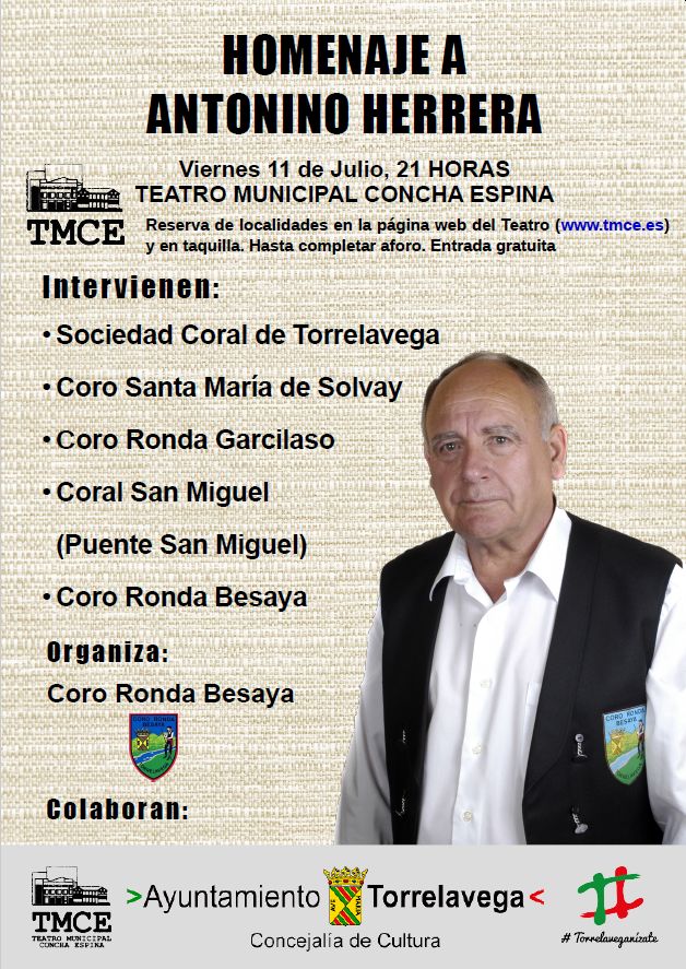 El Teatro Municipal Concha Espina (TMCE) de Torrelavega acogerá un emotivo homenaje a Antonino Herrera, figura destacada del ámbito coral en Cantabria.