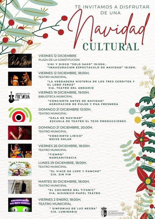 Este año te invitamos a disfrutar de una fantástica #NavidadCultural, para ello hemos preparado un programa de actividades culturales para que disfrutes como tú quieras, no te quedes en casa y sal a la calle.